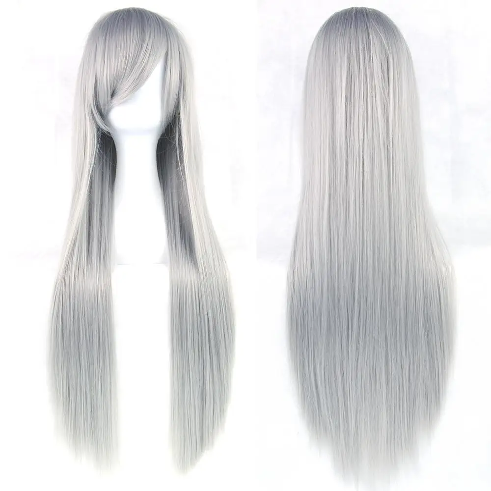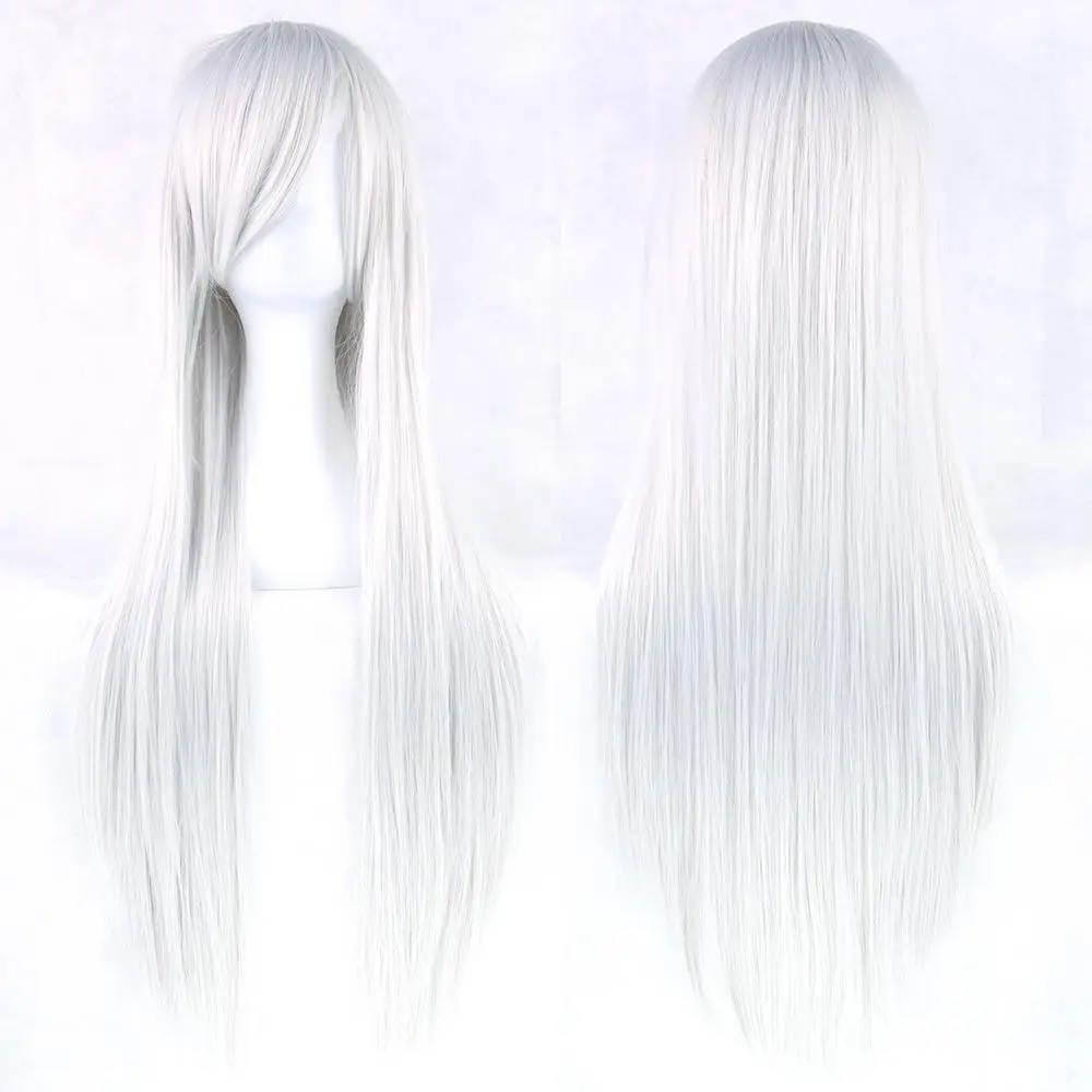 Soowee 24 Colors 80cm Long Synthetic Hair Wig for Women Heat Resistant Fiber Hairpiece Pink Gray Straight Cosplay Wigs