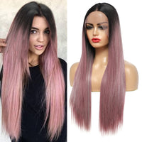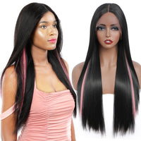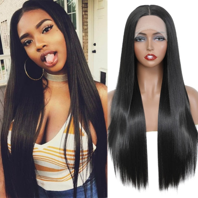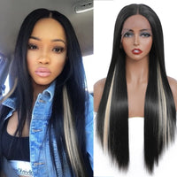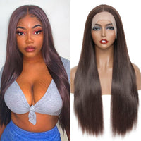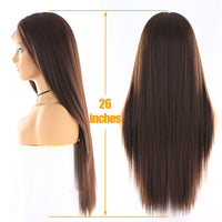 Yaki Straight Hair Synthetic Lace Front Wig For Black Women Light Brown Color Long
