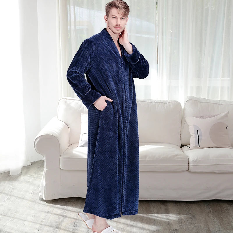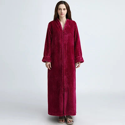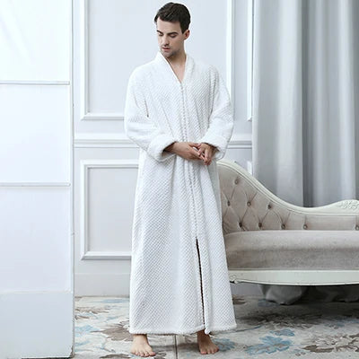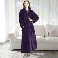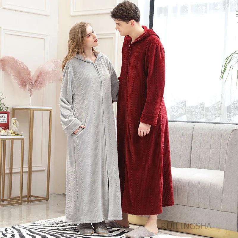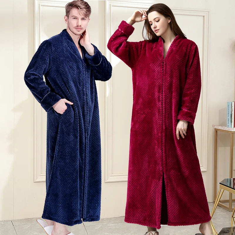 Women Winter Extra Long Thick Warm Bath Robe Plus Size Zipper Luxury Flannel Peignoir Pregnant Bathrobe Men Coral Fleece Robes