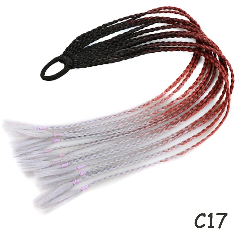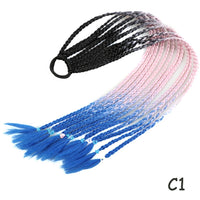AZQUEEN Synthetic Colored Braided Ponytail Hair Extension Rainbow Color Braids Pony Tail With Elastic Band Girl's Pigtail