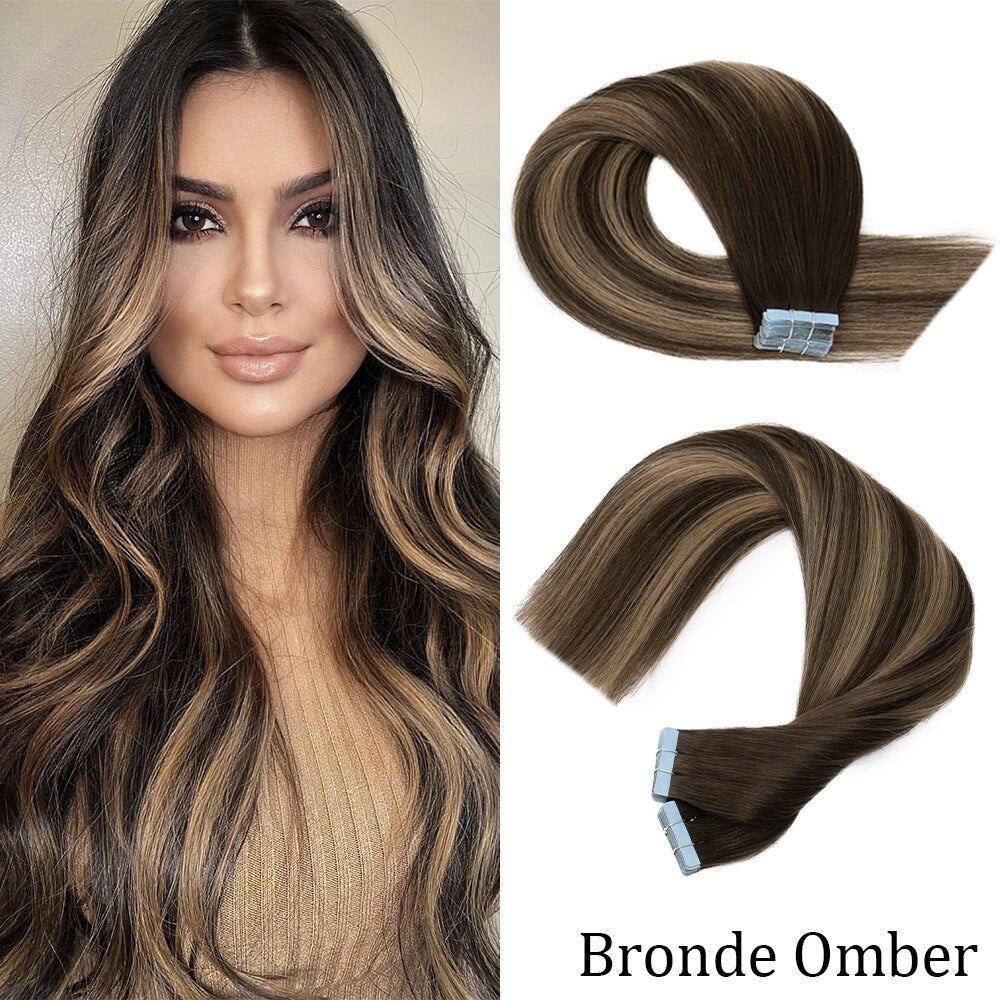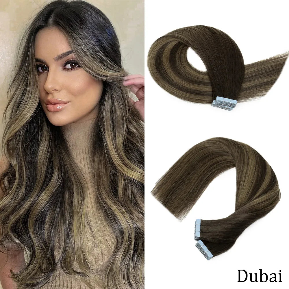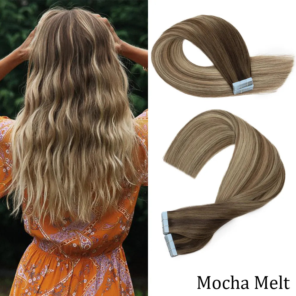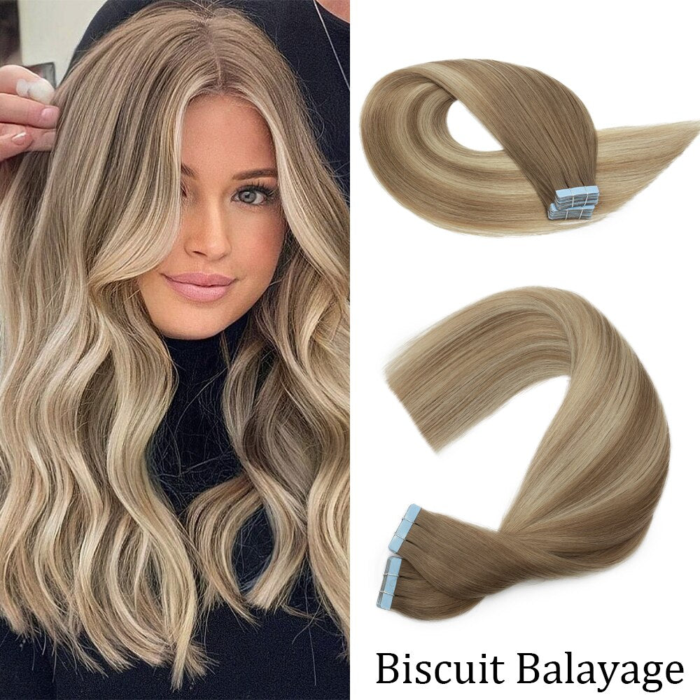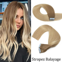 Tape in Human Hair Extensions Natural Real Remy Human Hair Balayage Blonde Seamless Adhesive Skin Weft Tape ins Hair Extensions