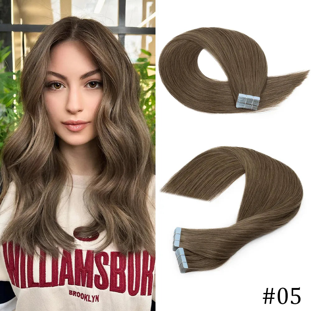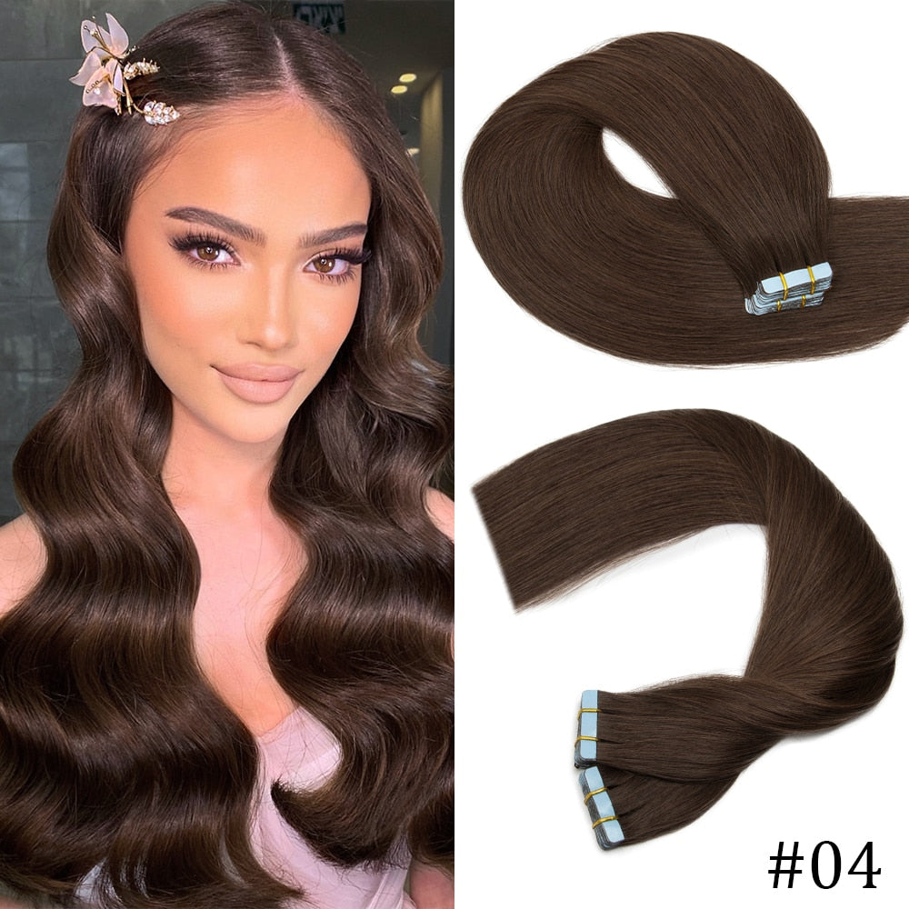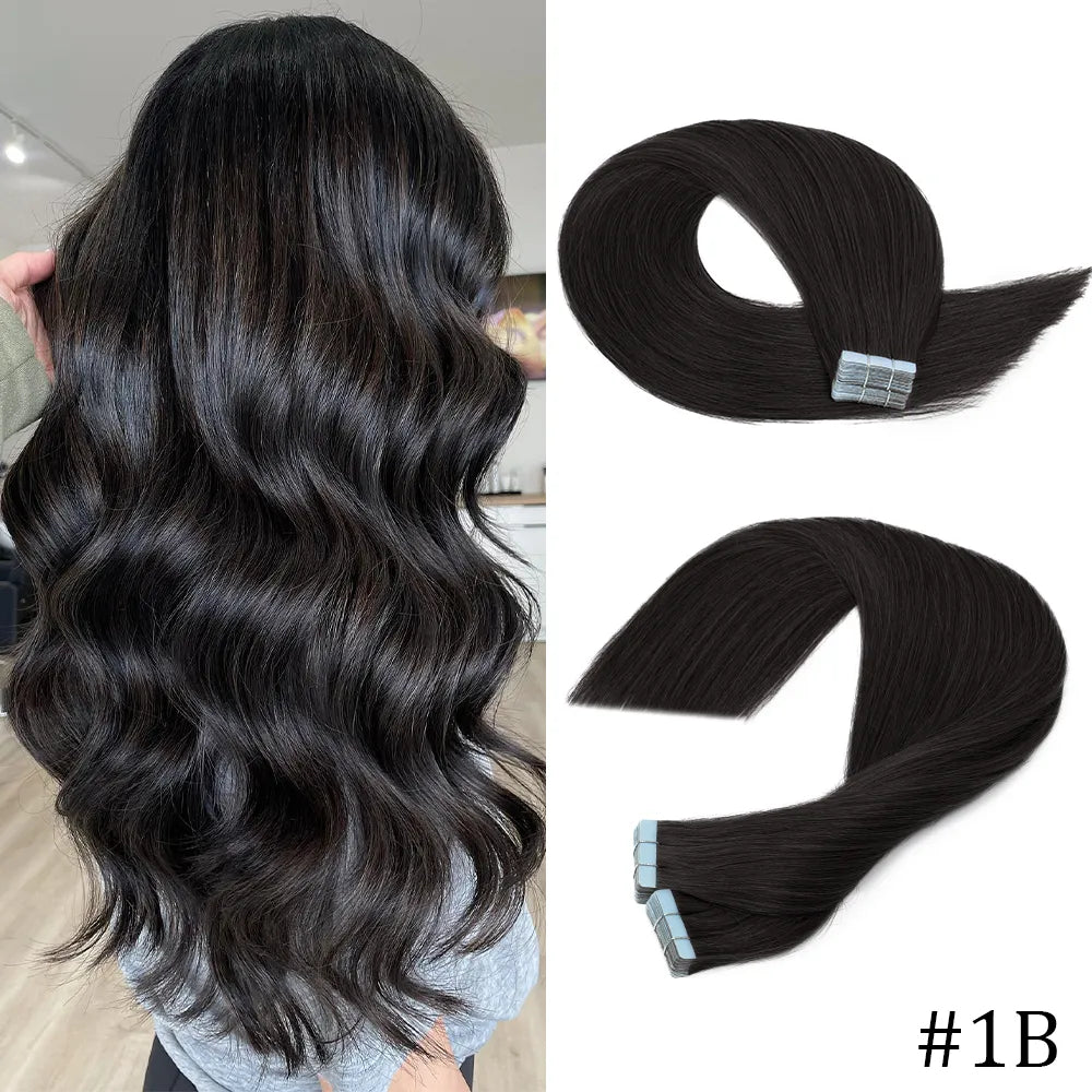 14-24'' Long Human Hair Extension Tape Ins Natural Real Human Hair Skin Weft Adhesive Hairpiece
