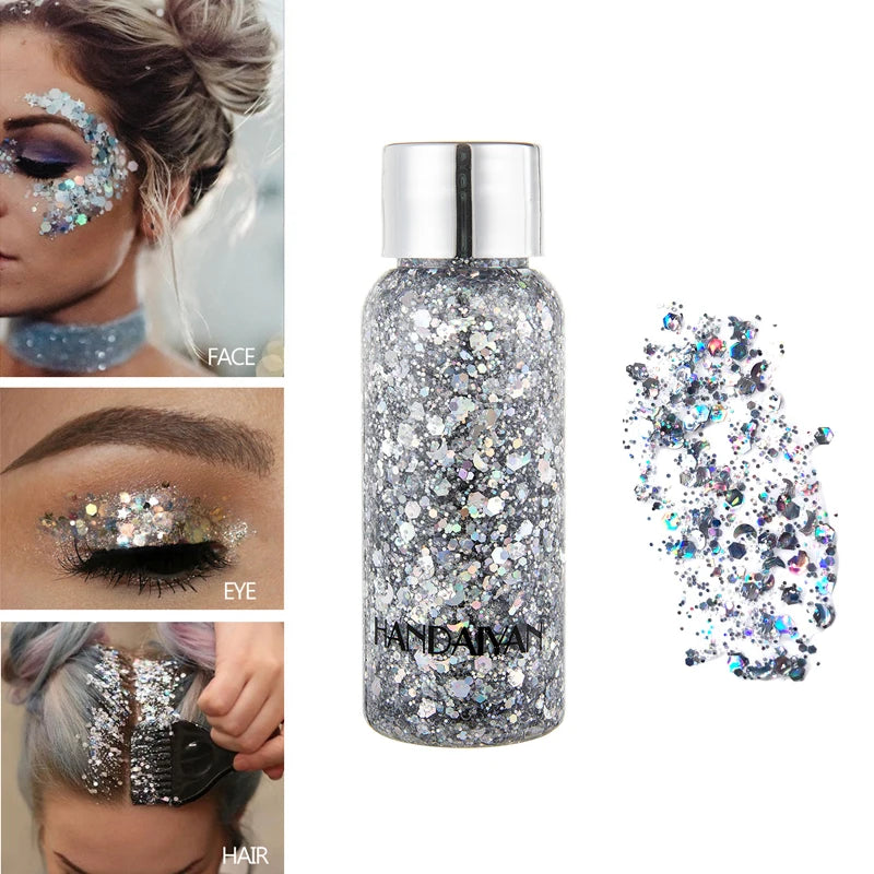HANDAIYAN Teras グリッターボディジェルクリーム体毛顔アイグリッターフラッシュハートパレットスパンコール顔料クリームフェスティバル装飾