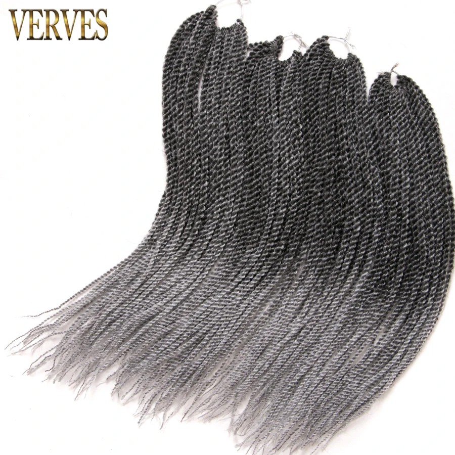 VERVES Ombre Synthetic Crochet Braids 18 inch 30Roots/Pack Small Senegalese Twist Hair Braiding Extensions Black Grey Purple