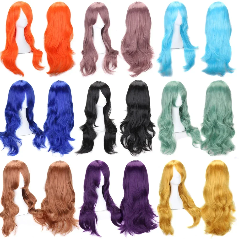 Cosplay Anime Long Wavy Pink Blue Red Blonde Black Green White Brown Cosplay Wig Synthetic Wig