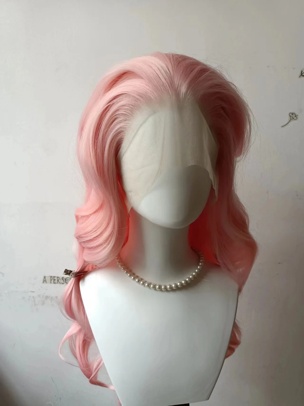 24 inch (60cm) long synthetic wig in light pink color