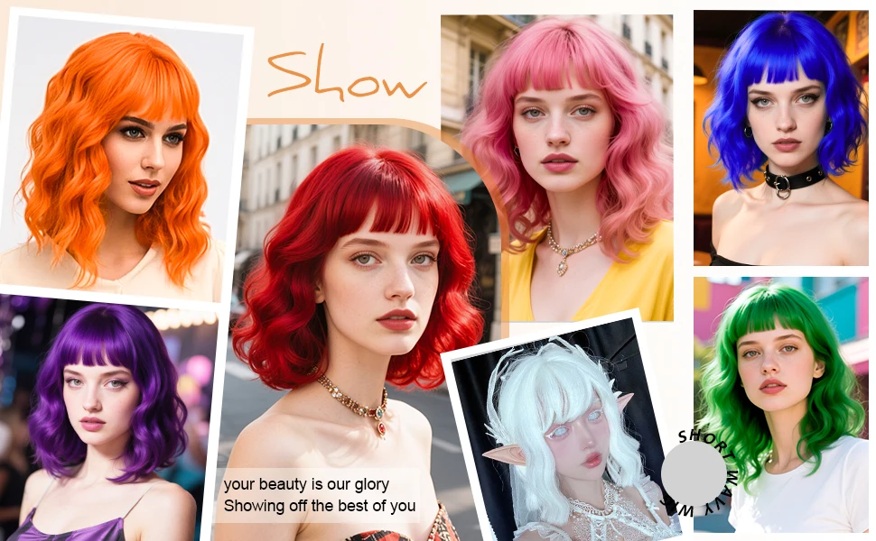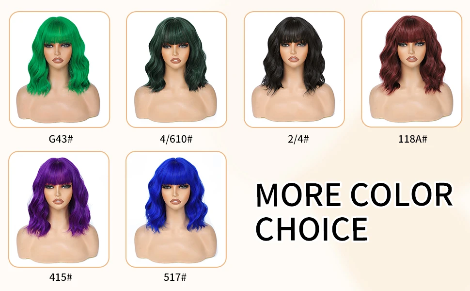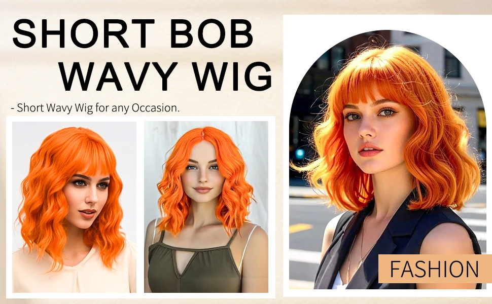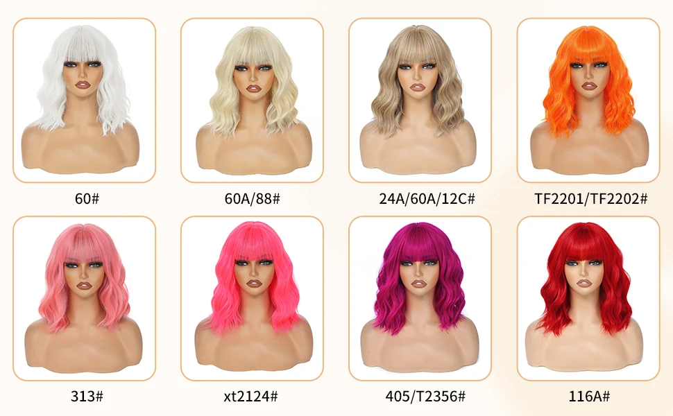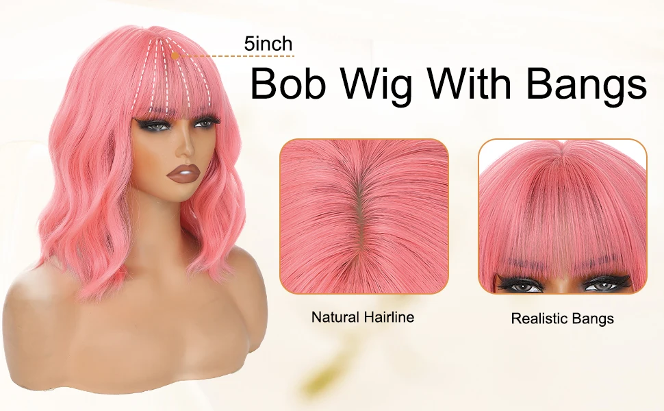14inch Short Wavy Bob Synthetic Wig with Air Bangs Heat Resistance Shoulder Length Curled Wigs for Daily Use Cosplay for Women