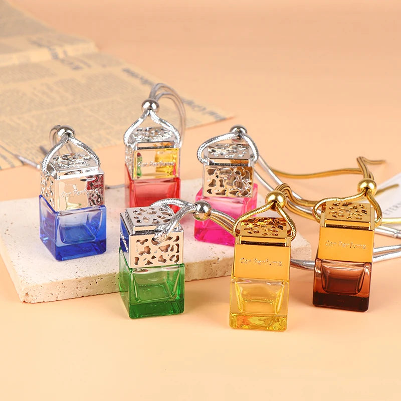1Pc Car Hanging Essential Oil Diffuser Fragrance Air Freshener Perfume Bottle Ornament Hanging Empty Bottle Interior Accessory