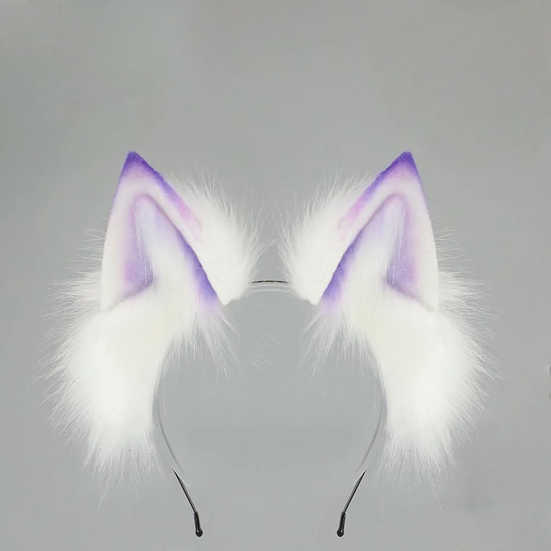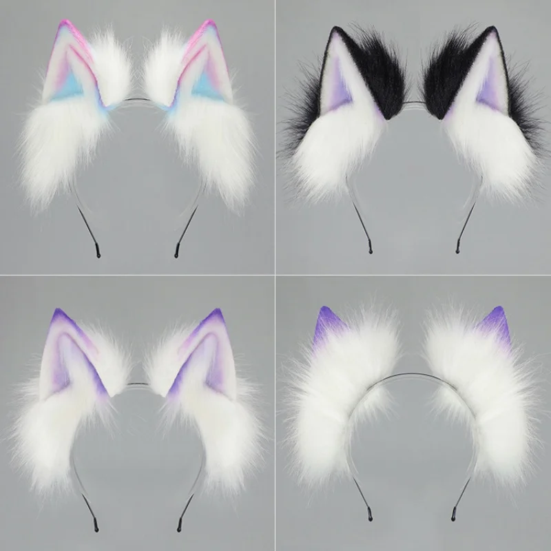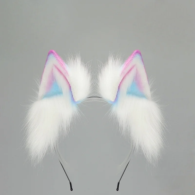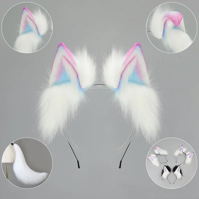 2025 New Handmade Colorful Gradient Cat Ears Headband Adjustable Belt Fox Tail Halloween Cosplay Animal Wolf Props