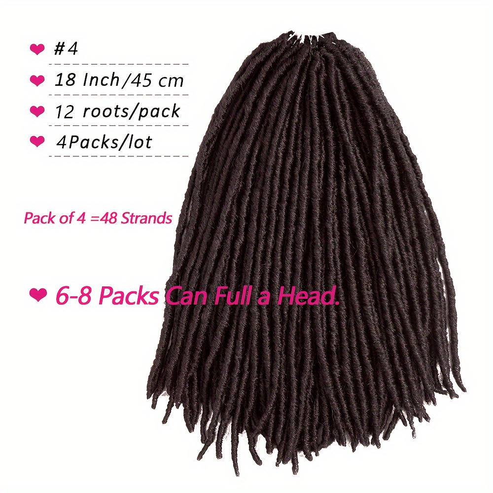 Achieve a flawless and natural look with our 48 Strands Pre-Looped Faux Locs Crochet Hair Extensions. Perfect for African hairstyles, these pre-looped locs provide a tight, neat, and durable finish. Each pack includes 12 strands (4 packs in total), ensuring a full, voluminous appearance that’s easy to install and long-lasting. Made from high-quality, non-frizzy synthetic fibers, these locs are odor-free and perfect for everyday wear or special occasions. No smell, no tangling—just a smooth and sleek hairstyle every time.