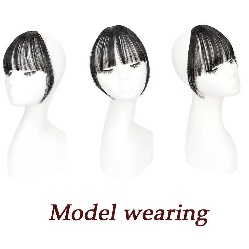 This clip-in bangs wig is designed for women who want an instant fringe look without cutting their real hair.