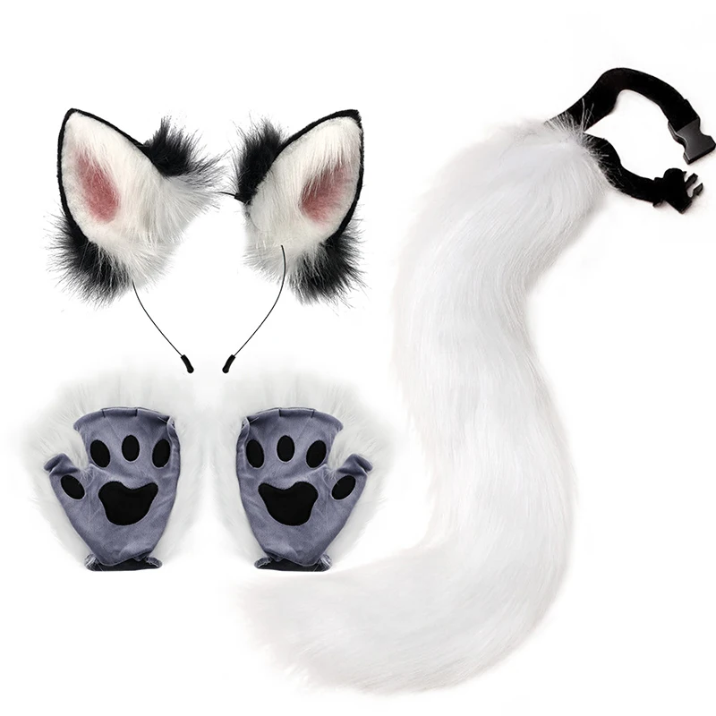 Kemonomimi Fox Ears & Plush Tail with Paw Gloves – Cute Halloween Cosplay Accessories