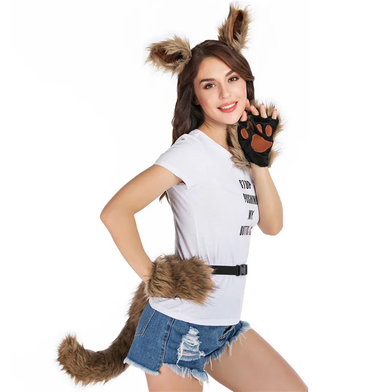 Fox ears, fluffy plush tail and cute paw accessories — instant anime-style cosplay look -
