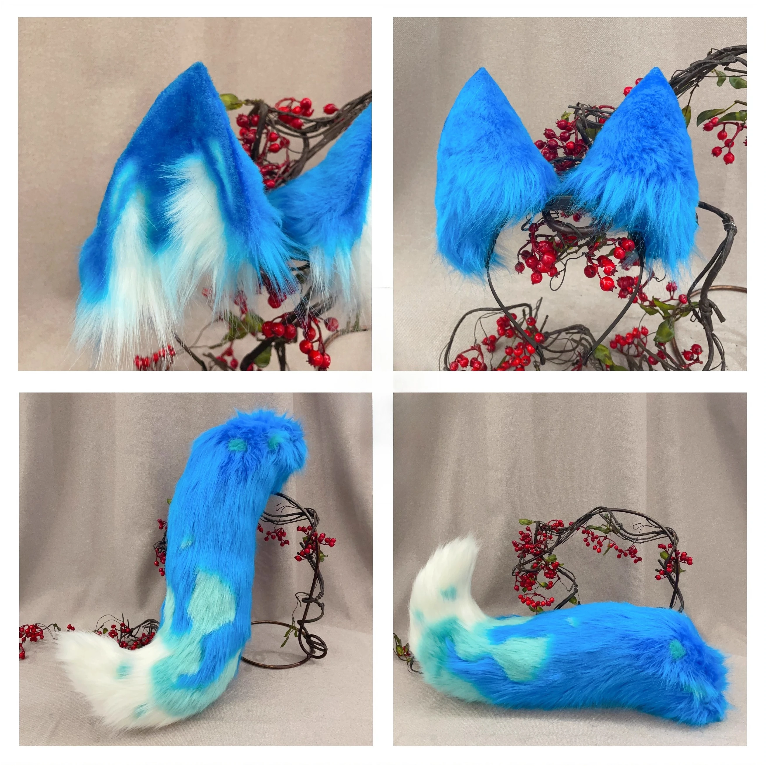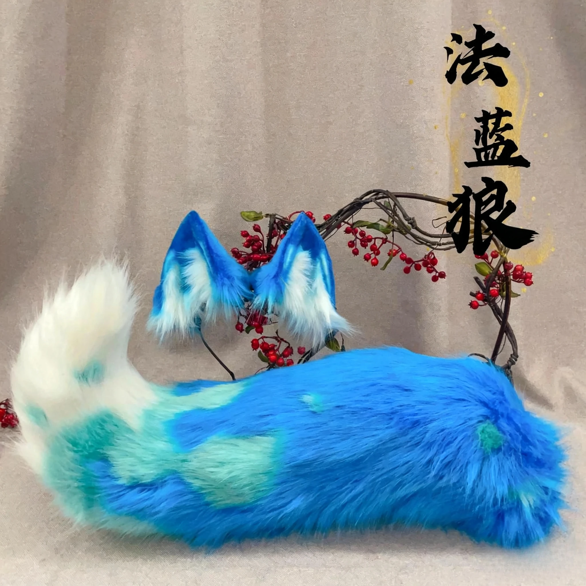 New Hand Made Work Halloween French Blue Wolf King Ears Hairhoop Tail Set Anime DIY Costume Accessories Cosplay Custom Made