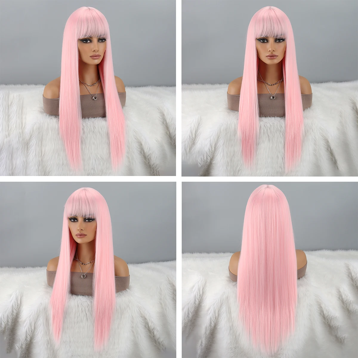 This long straight pink wig with bangs is designed for women who want a bold yet wearable look. The clean straight texture and soft fringe create a balanced style that works for both everyday fashion and creative cosplay.