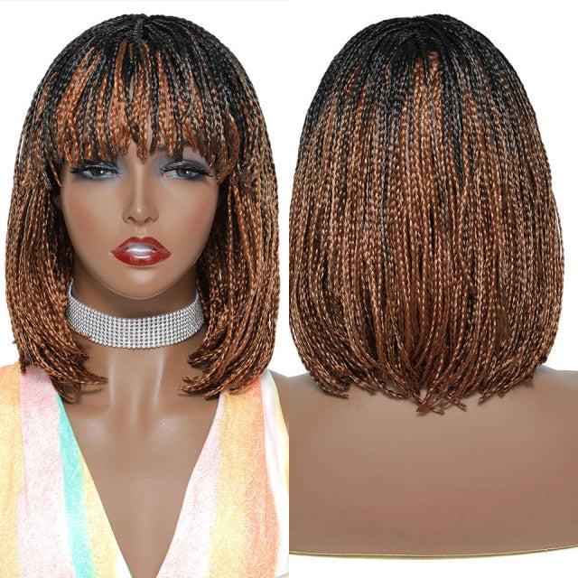 Short Braided Wigs For Black Women Heat Resistant Crochet Box Braided Bob Wig With Bangs
