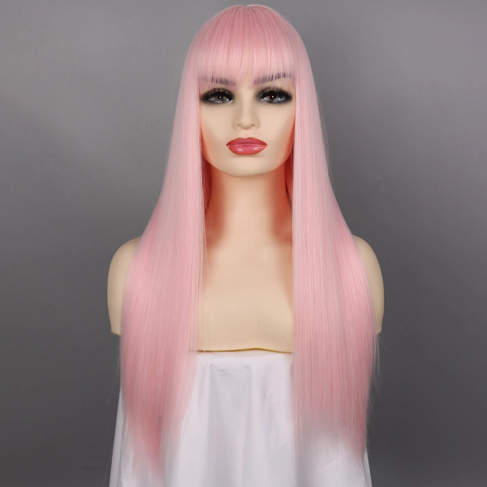 Synthetic Straight Wigs with Bangs Long Silky Heat Resistant Fiber Hair Full Machine Wig Cosplay Party Wig For Fashion Women