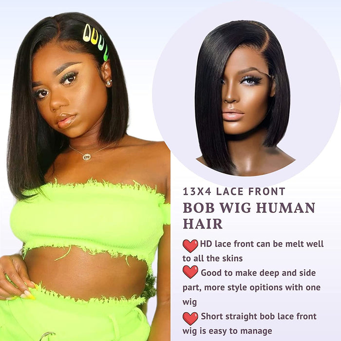 Straight Bob Human Hair Wigs Lace Closure Straight Short Bob Wigs