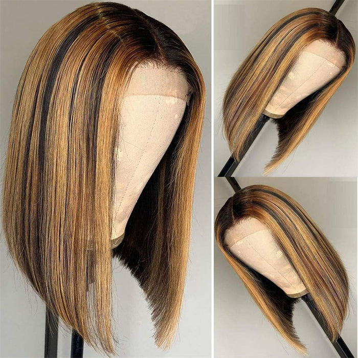 T Part Wigs 4/27 Highlight Bob Short Lace Front Wigs Human Hair