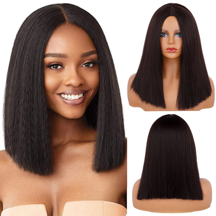Synthetic wig Afro Bob Wig Yaki Straight High Temperature Fiber Hair Yaki Straight Curly Hair Medium Long Holiday Hair Wome