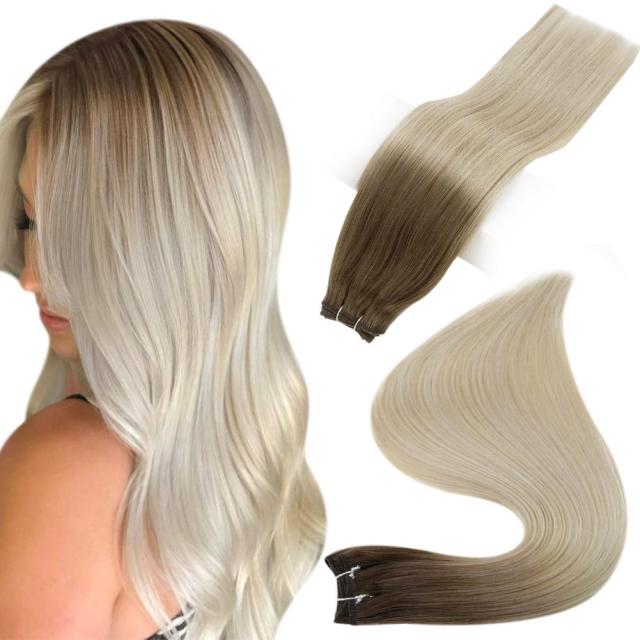 Human Hair Weft Extensions Hair Bundles Ombre Blonde Color 100g Sew In Silky Straight Remy Skin Double Weft For Salon