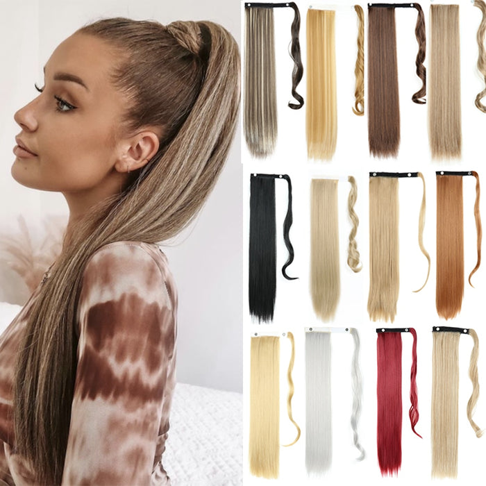 22inch Long Straight Clip in Hair Tail Nature FaKe Ponytail Extension Hairpiece With Hairpins High Temperature Synthetic Ponytai